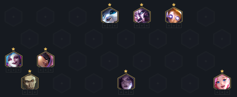 7人口还是同理,此时嫖到名流卡就要留一下了,防止后面9人口大搜名流,一张就够了,不用2星,7人口还是补2星3费最佳,没有的话也不太影响连胜。