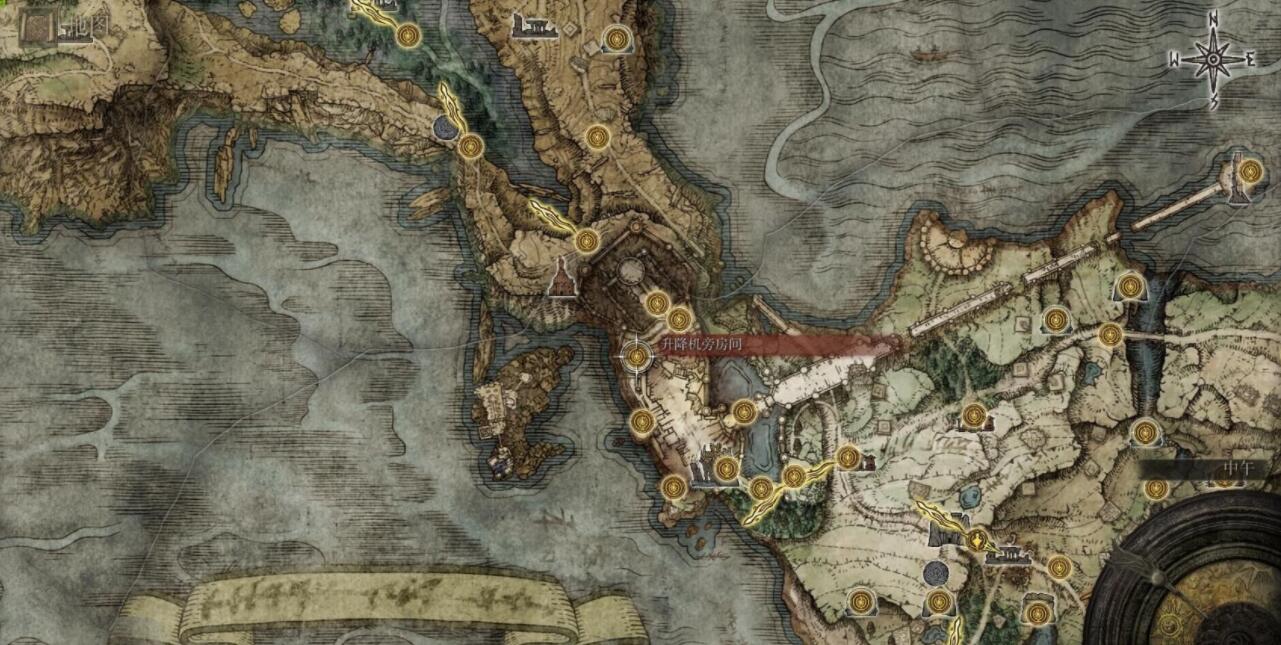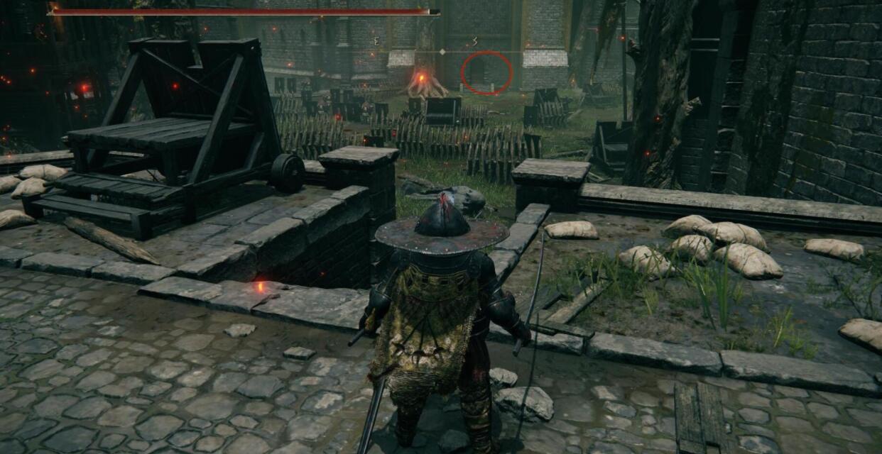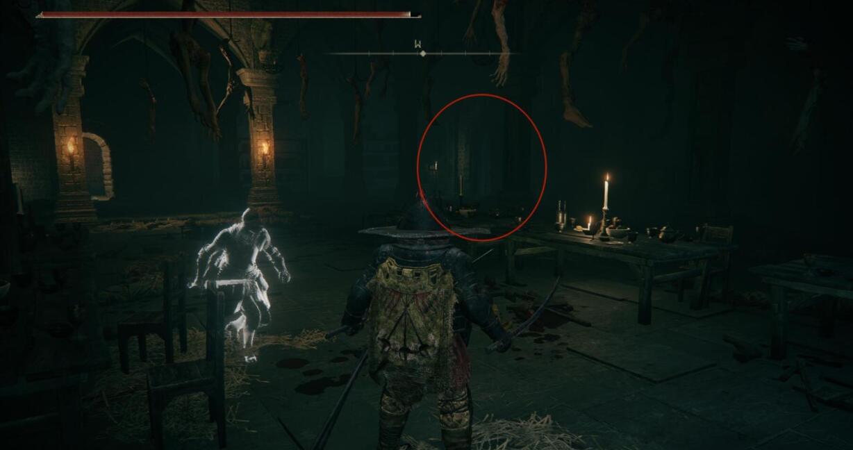 第二张图进入红圈位置拱门,之后再直行前进,来到第二个房间,房内有接肢贵族,右转看到两扇拱门,进入红圈标注拱门,之后用石剑钥匙解开封印,拿到道具。
