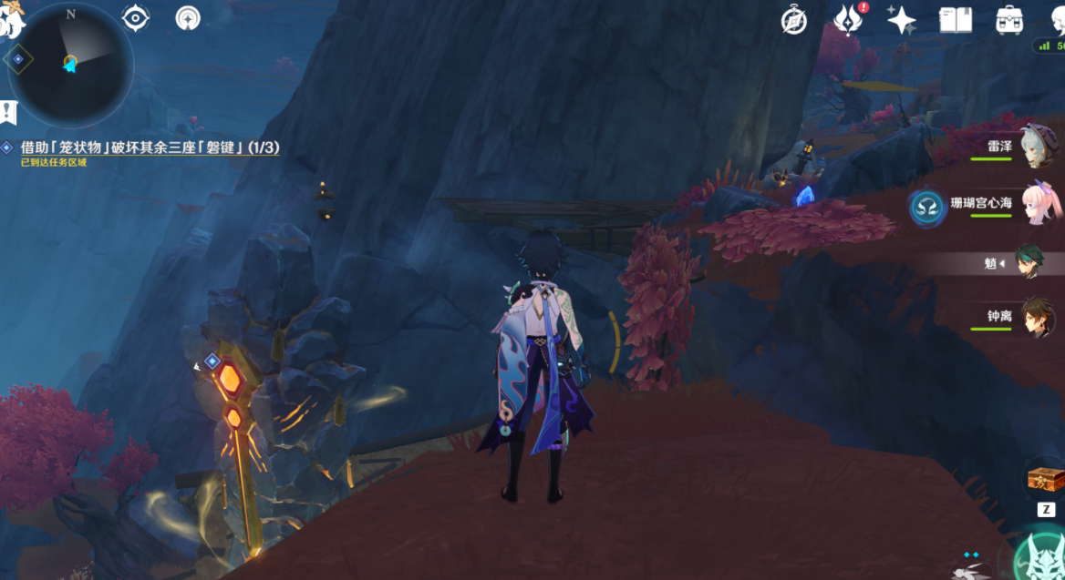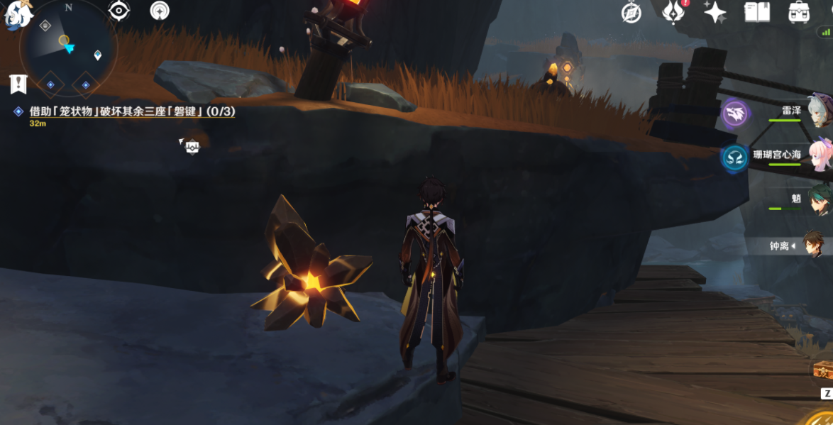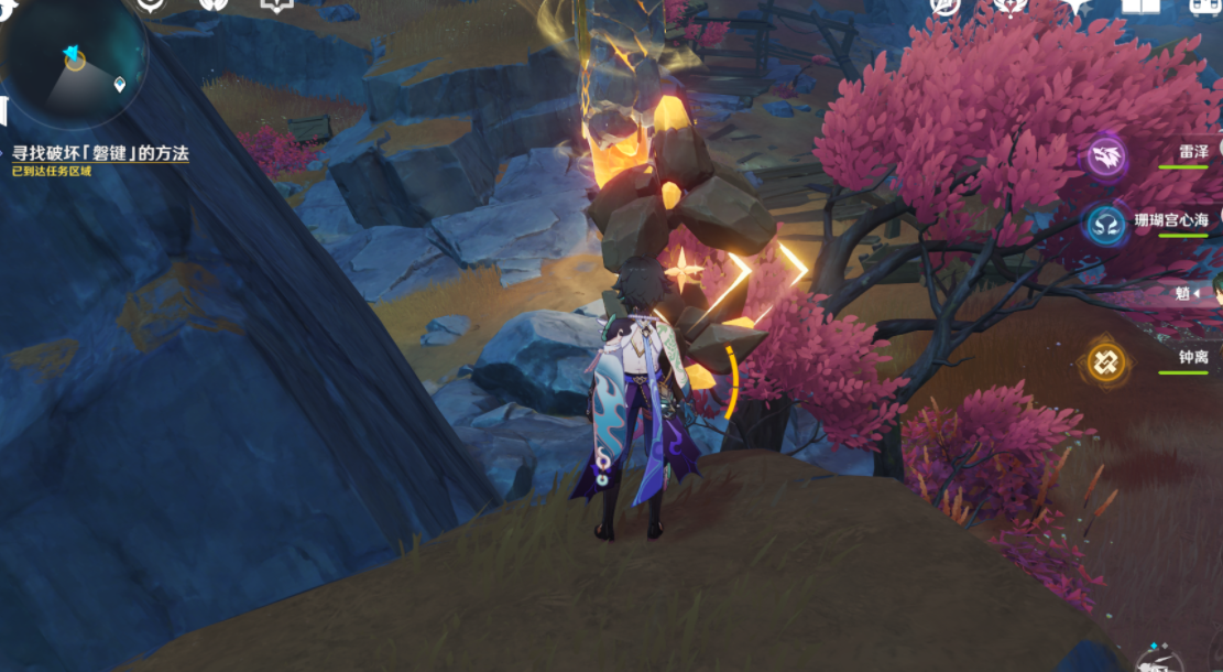 在用角色打碎岩聚合物,请瞄准磐键的方向进行击碎。即可解锁该处的磐键。