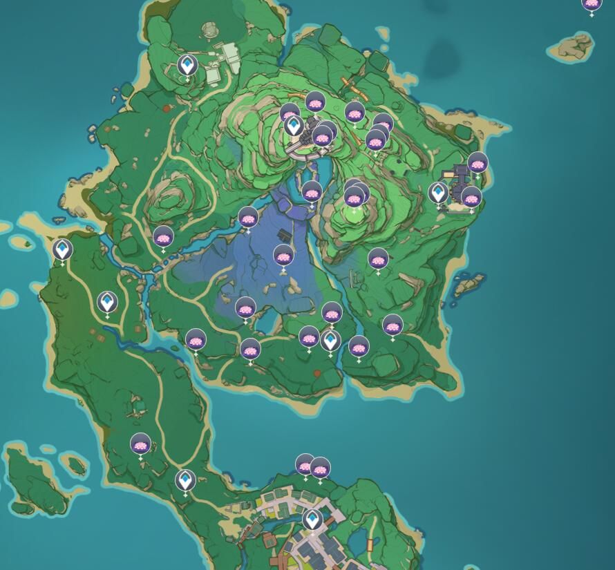 如下图所示,绯樱绣球就分布在稻妻地图的神鸣岛上。