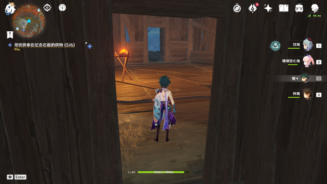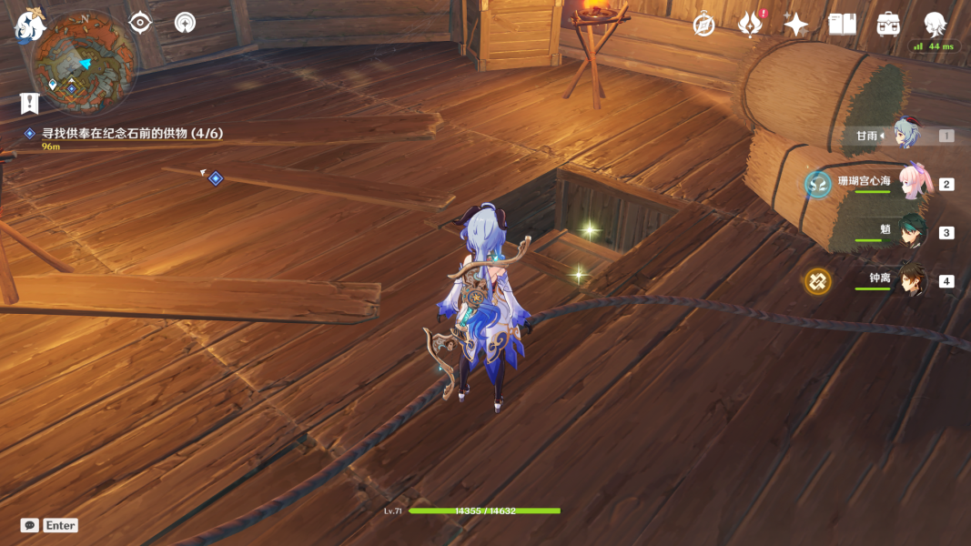 跟随仙灵进入这里的屋子,这里有一个火药桶打炸,就可以露出搜索点。