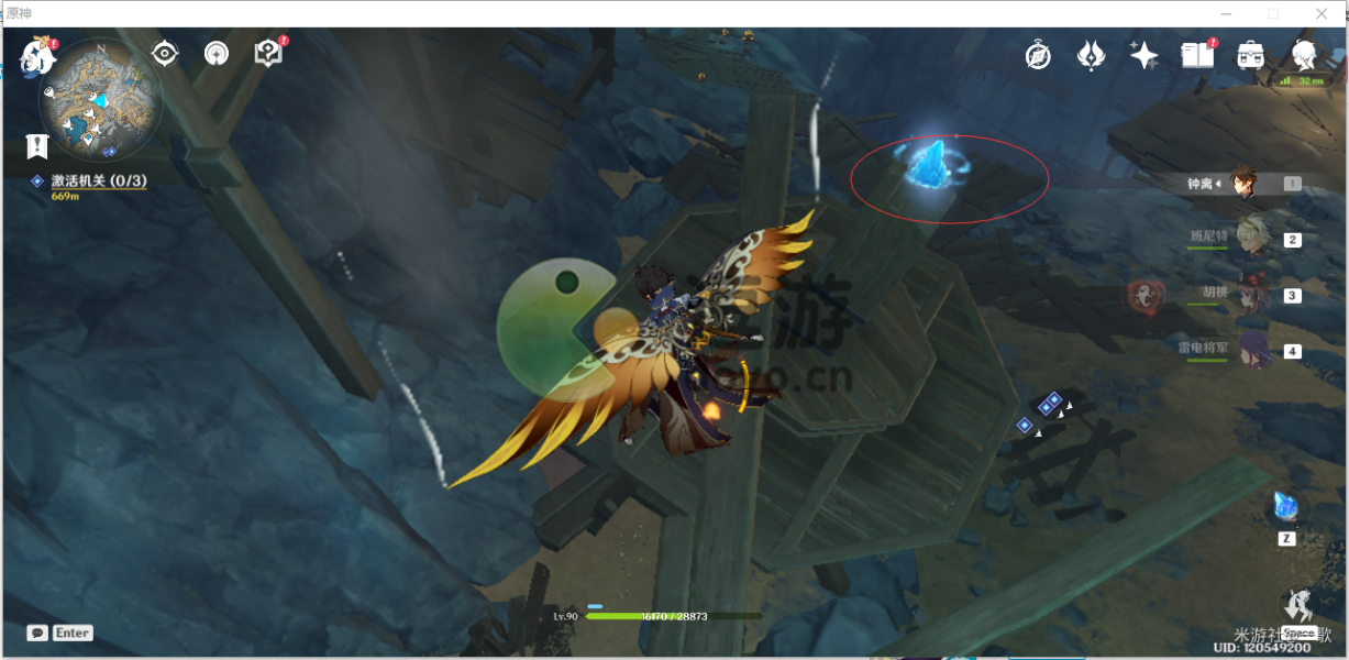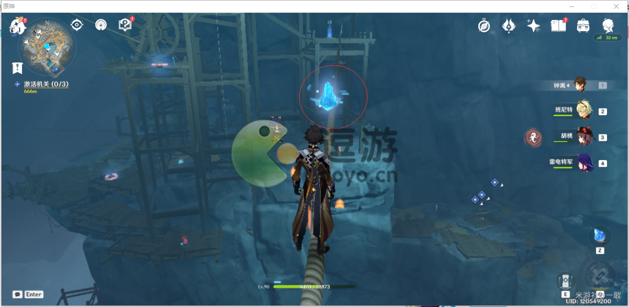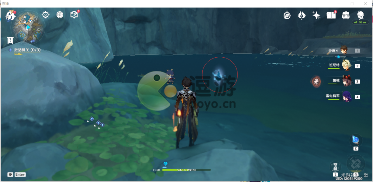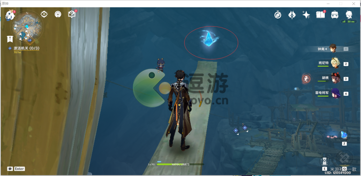 5.传送点往西南的栈道走,有个岩史莱姆,里面走,有个流明晶石,如下图