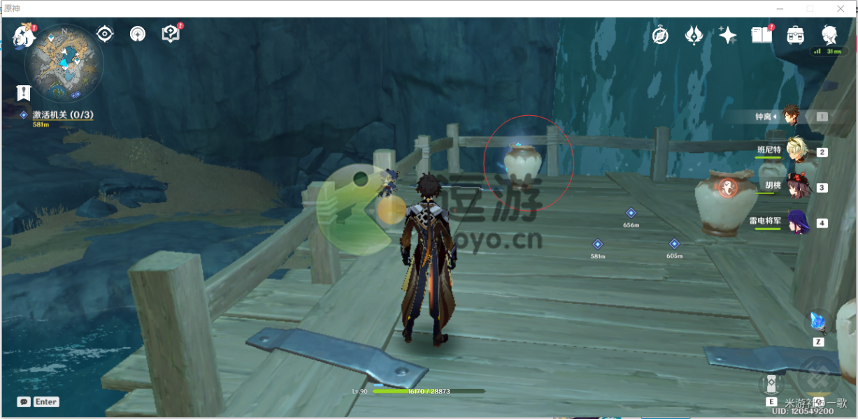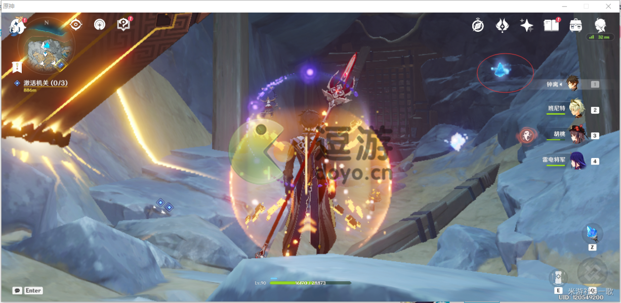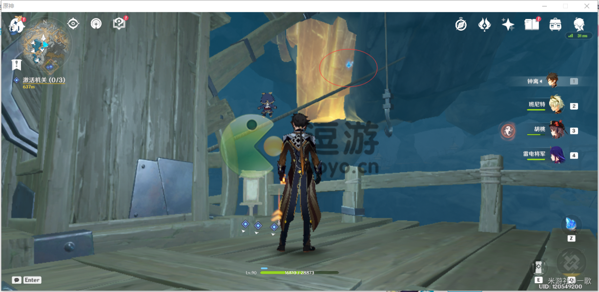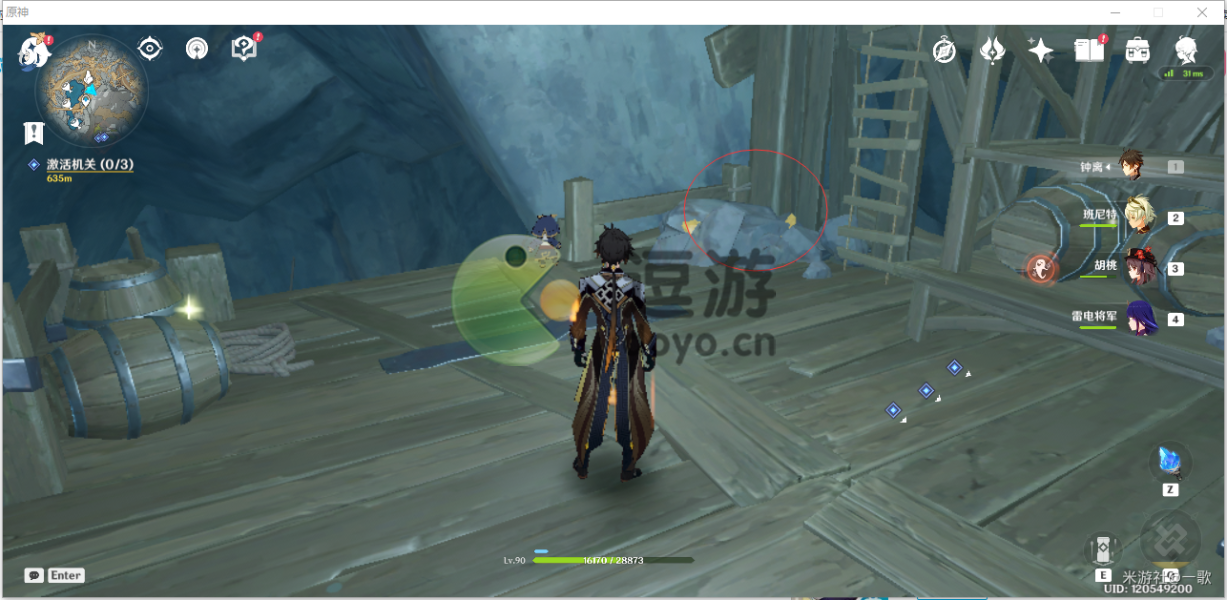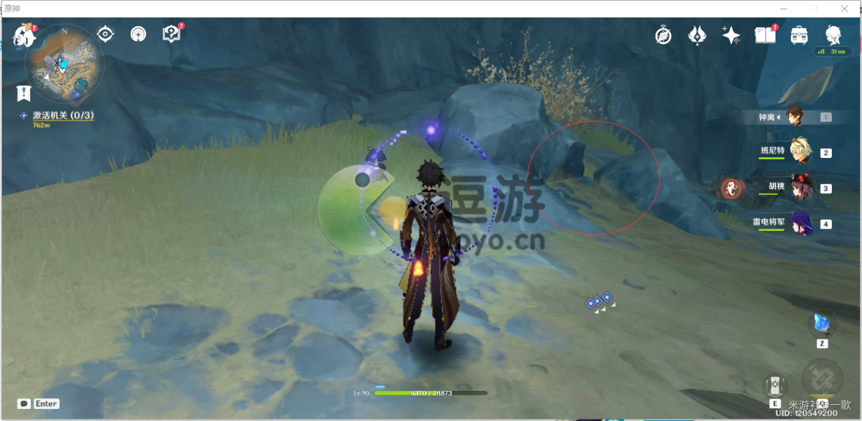 5.传送点往西南的栈道走,有个岩史莱姆,里面走,有个流明晶石,如下图