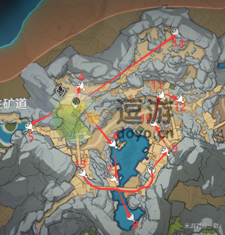 8.这里失误了,应该是从传送点往水坑方向,而不是从7号瀑布方向走。如下图
