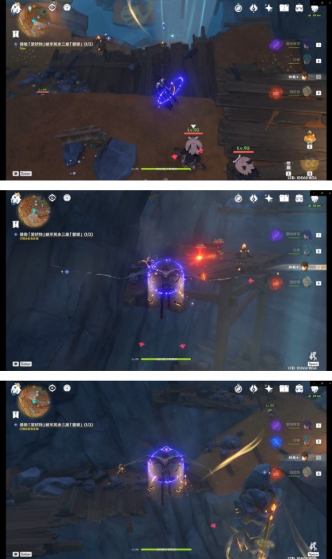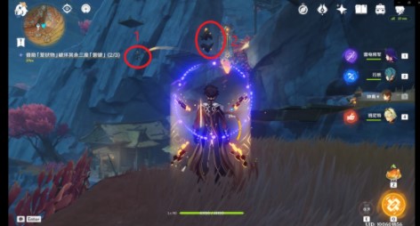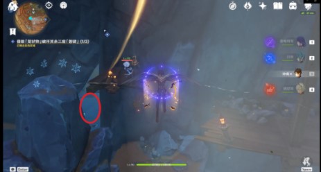 到达第三处「磐键」后可以击碎此大型碎石(里面是一个跳跃平台)快速到达上方