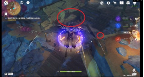 破坏第一处的「磐键」后可以使用跳跃平台(红圈)出去并前往第二处「磐键」方向(根据任务指示)