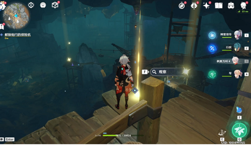 5、前往巨渊主矿区传送锚点,来到任务引导处的桌子前阅读「安全距离爆破装置·信号指南」,在桌子附近光点处可以观察到远处三个地方的灯桩位置,我们需要按照指南中所说的方法调整三处灯状:低处的灯桩要调整成高频闪烁;中等高度处的灯桩要调整成低频闪烁;最高处的灯桩要调整成低频闪烁。
