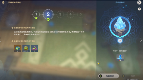 注意事项③:这里需要流明石触媒等级达到2级,解锁「纯光绽放」功能:收集一定数量的流明晶石找「瑾武」加工升级就行。