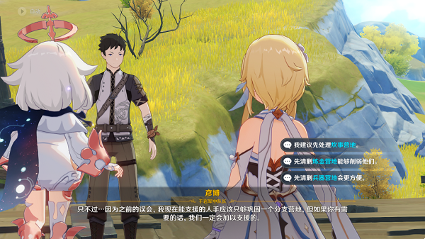 千岩军会帮助旅行者先清理掉一个营地(就是对话中选择的那个)。