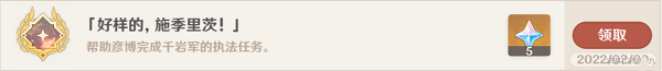【任务奖励】冒险阅历*250,原石*30,摩拉*30000,大英雄的经验*3