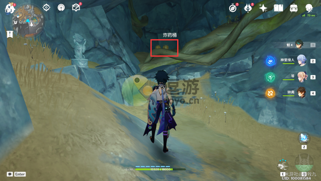 1.来到下图点位处(在高处,可跟随仙灵过来,别去下面找),攻击炸药桶炸开岩石。