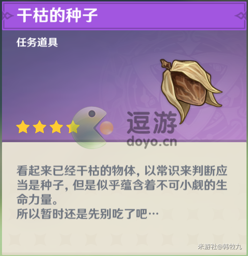 8.通过派蒙最后所说的话可以得知,这个种子跟须弥地区相关。之前雪山就有漂流瓶,能触发稻妻的任务。