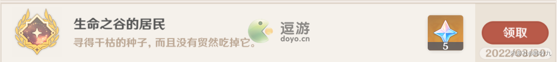 7.每触摸一个新苗就会解锁一个元素方碑,用对应元素点亮元素方碑。元素方碑全部点亮后,可以开启中间的精致宝箱。开启精致宝箱后,会提示获得成就「生命之谷的居民」,并获得道具「干枯的种子」。