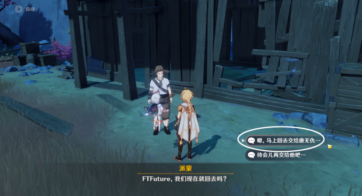将他打服之后,他还是对自己的古华派身份念念不忘,随身携带的玉佩似乎让他的精神有些错乱,为了防止他出事,我们决定想办法把他的玉佩弄过来。小天才派蒙竟然真的让我们成功用鸟蛋当宝石把玉佩换了过来,不愧是你。