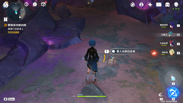 1、调查眼前的黑雾,并在附近找到愚人众的日记本。