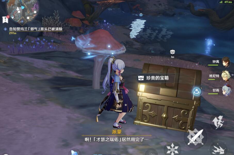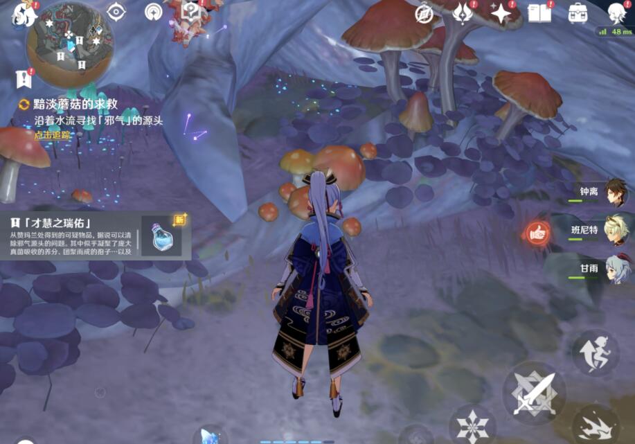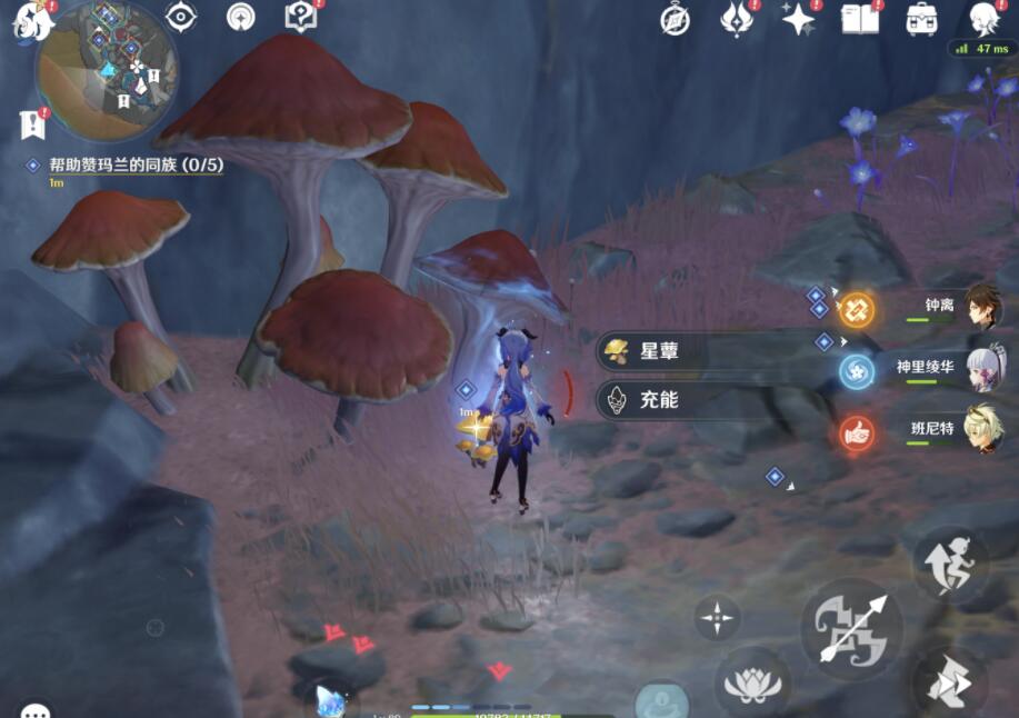然后前往地图指引的五个点去帮助其它小蘑菇。