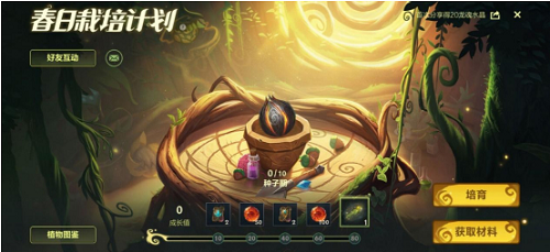 1、 活动期间,召唤师完成每日任务,可领取随机材料,使用材料可培育种子;