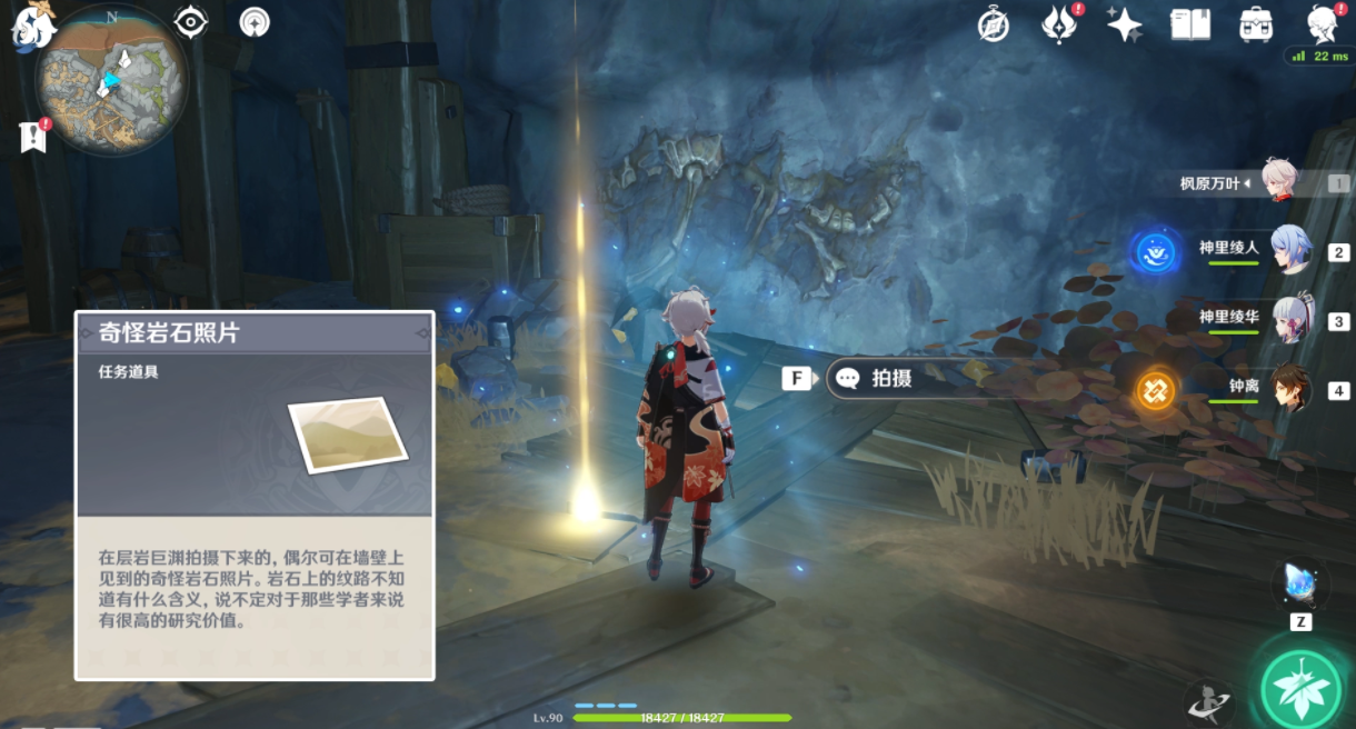在层岩巨渊地下矿区,我们有时会在墙边看到“奇怪的图案”,靠近后可以通过拍摄照片的方式记录下来,并获得 「奇怪的岩石照片」。