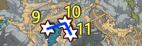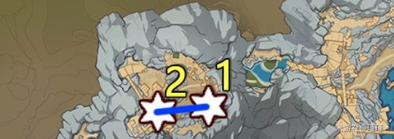 藏宝图2:做支线任务「千年千岩」其中获取任务道具之一的「共饮之杯」时,我们可以顺便过去拿第二张藏宝图,在营地堆砌着的背包上,走过去就会看到(有亮光);