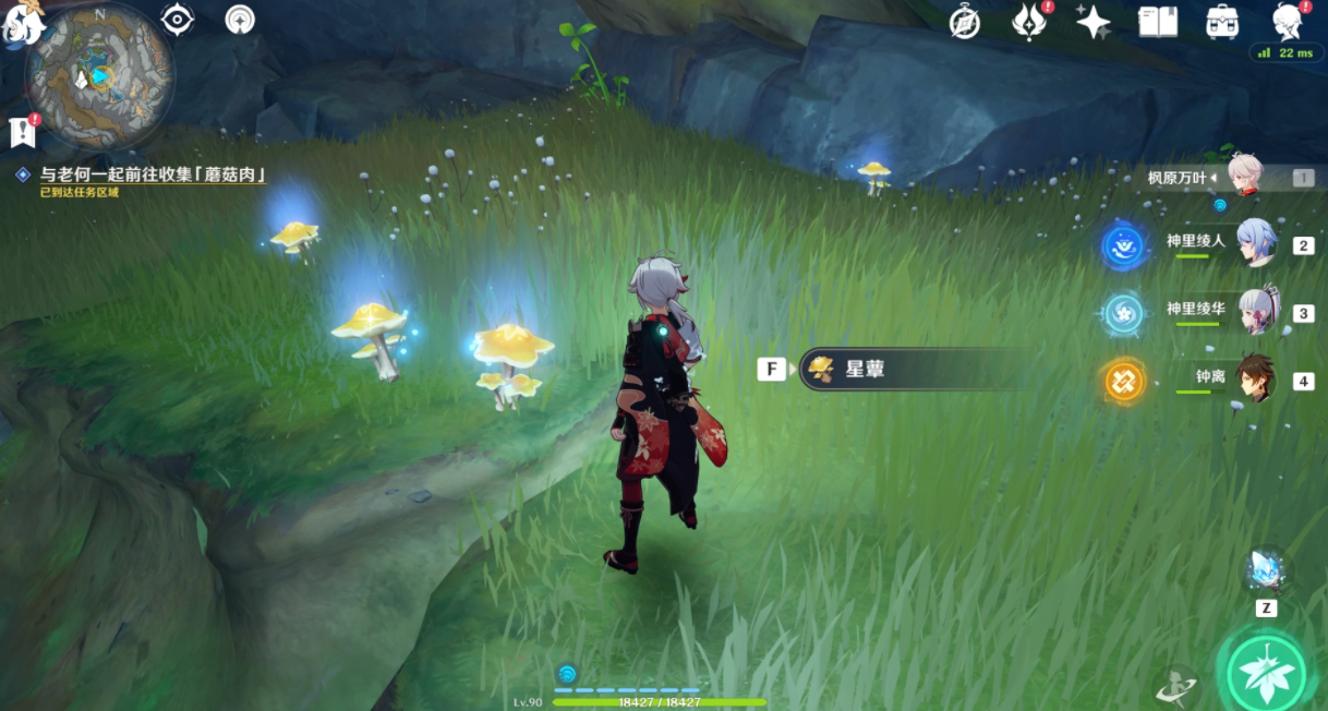 当我们将4株「星蕈」全部采摘后,周围会源源不断地涌出许多蘑菇怪,也就是「蕈兽」。可还没等我们击败几组,一旁的老何就出手了,一瞬之间解决掉了所有的蕈兽,嘴里还念叨着蘑菇肉的种种神妙功效。总之,既然老何吃完了蘑菇肉有力气了,我们就赶紧带他回营地吧。