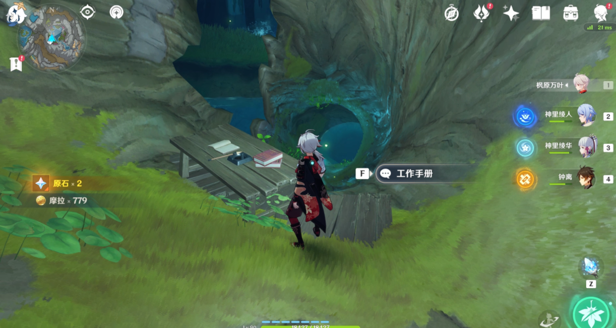 进入树洞后,我们可以发现里面有一张桌子,上面有一本「工作手册」,与其交互触发对话,即可接取隐藏任务「失踪的矿工」。