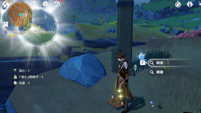 2、在上图最高点的位置,我们能够发现,有个木桩,通过在周围开启调查,就能发现鸟窝。