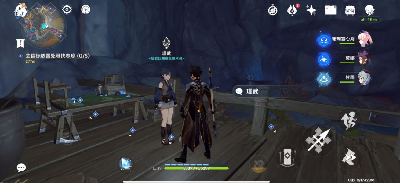 我们在荧光狭道右下的传送点与瑾武对话,她会让我们去信标处找志琼。