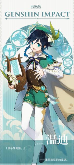 自由城邦蒙德的建立者,“尘世七执政”中的风神,为了让蒙德人民得到自由而放弃治理。千年后重返蒙德,辅助奴隶少女温妮莎推翻贵族的残暴统治,设立四风守护。又过千年,愚人众和深渊教团令蒙德内外交困,因而引来神的回归。风之神化身吟游诗人,与旅行者一同行动,解救被深渊教团操控的东风之龙。