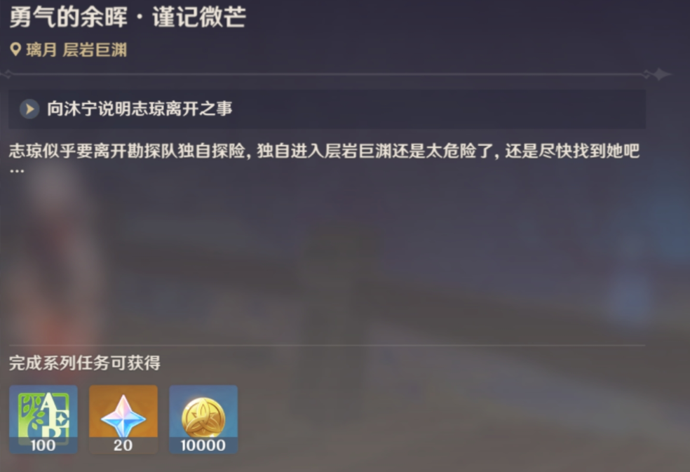 之后可以在层岩巨渊深处的一个帐篷处找到“志琼的信”