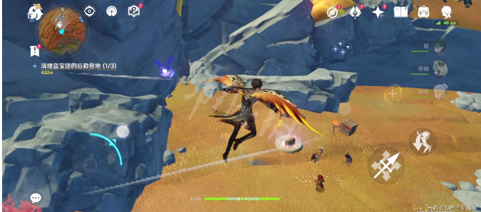 飞过去之后,开启下一个宝箱,然后在这个我位置使用岩属性攻击