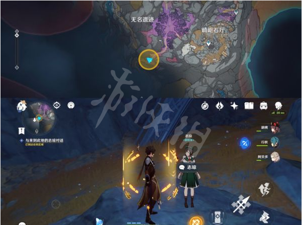 2、前往任务地点发现营地在这边了,继续与“志琼”对话,最后获得「岩厅之钥」*1