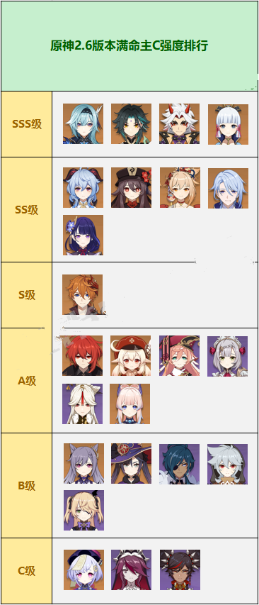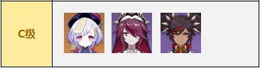 C级都是属于比较冷门的主C,即使是6命输出能力也不太强,因此并不太推荐大家使用这些角色来主C。