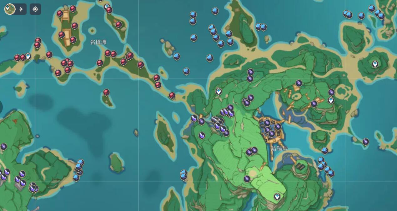 「踏鞴砂」与「名椎滩」处拥有着大量稻妻的区域特产,在此区域拍照的话能快速的完成任务。