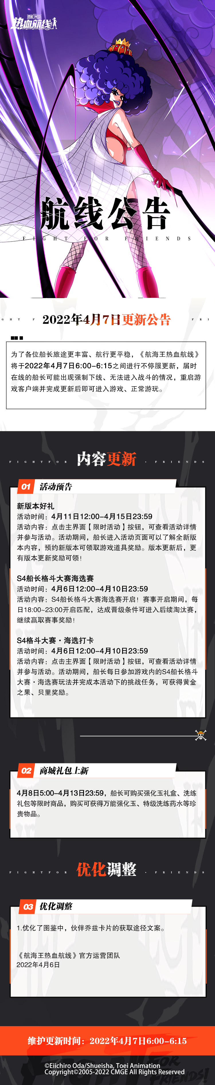 航海王热血航线4月7日更新内容。航海王热血航线将于4月7日进行了更新,更新后周年庆开启以及新版本来袭,下面就让我们一起来了解一下航海王热血航线4月7日更新内容吧。