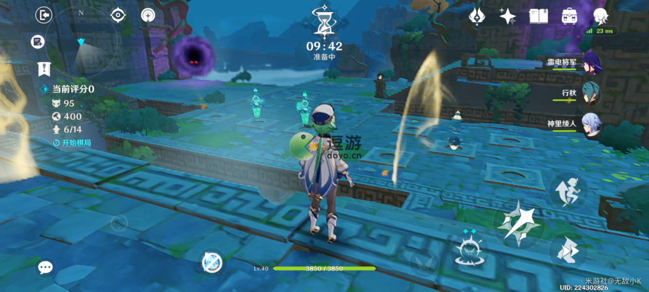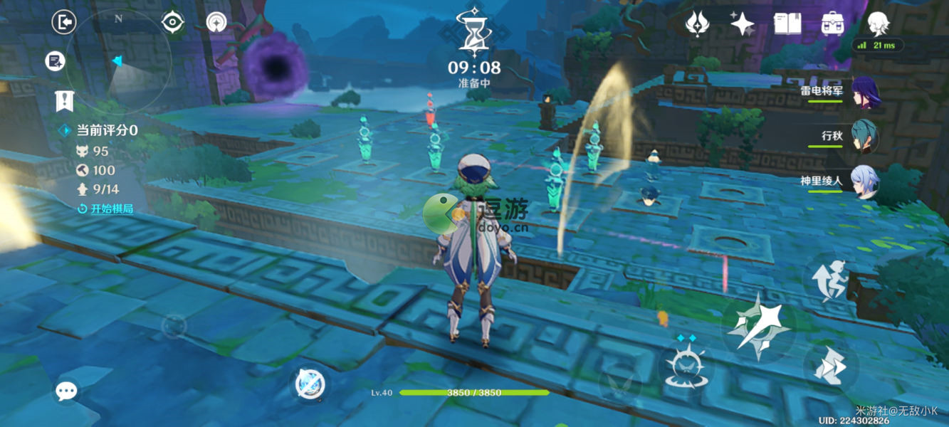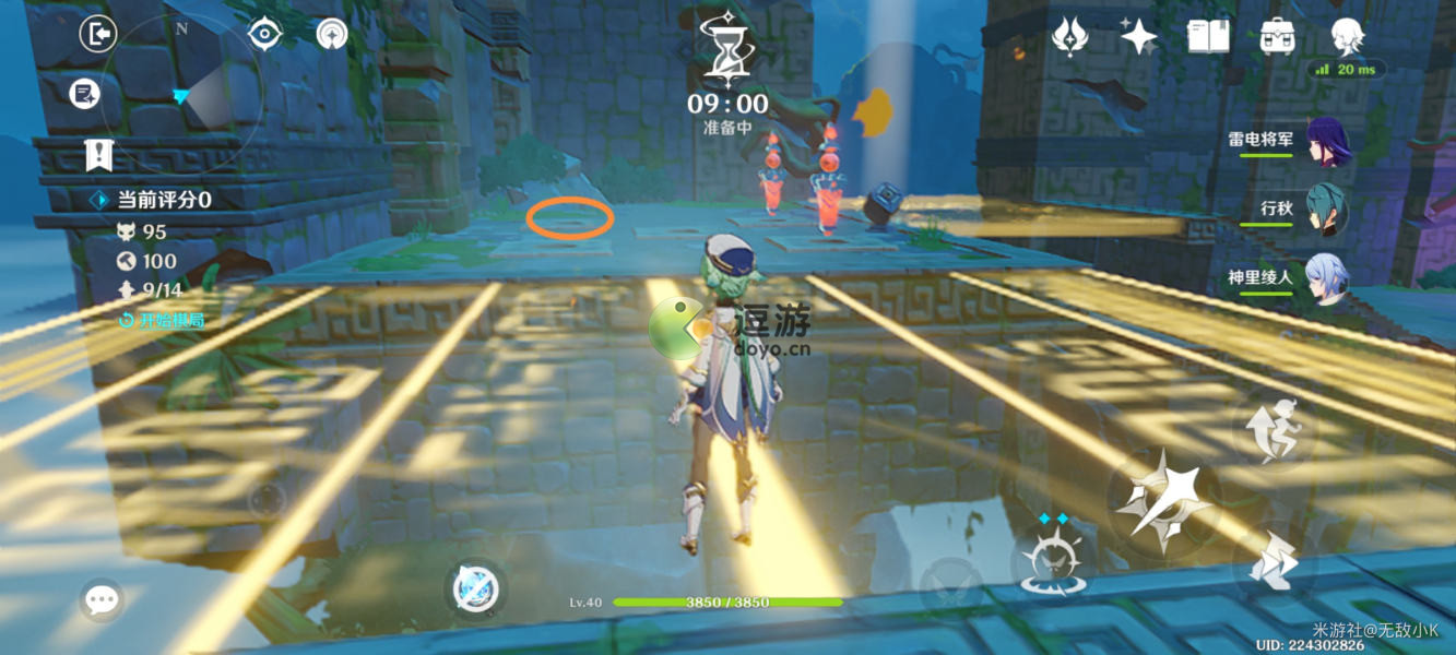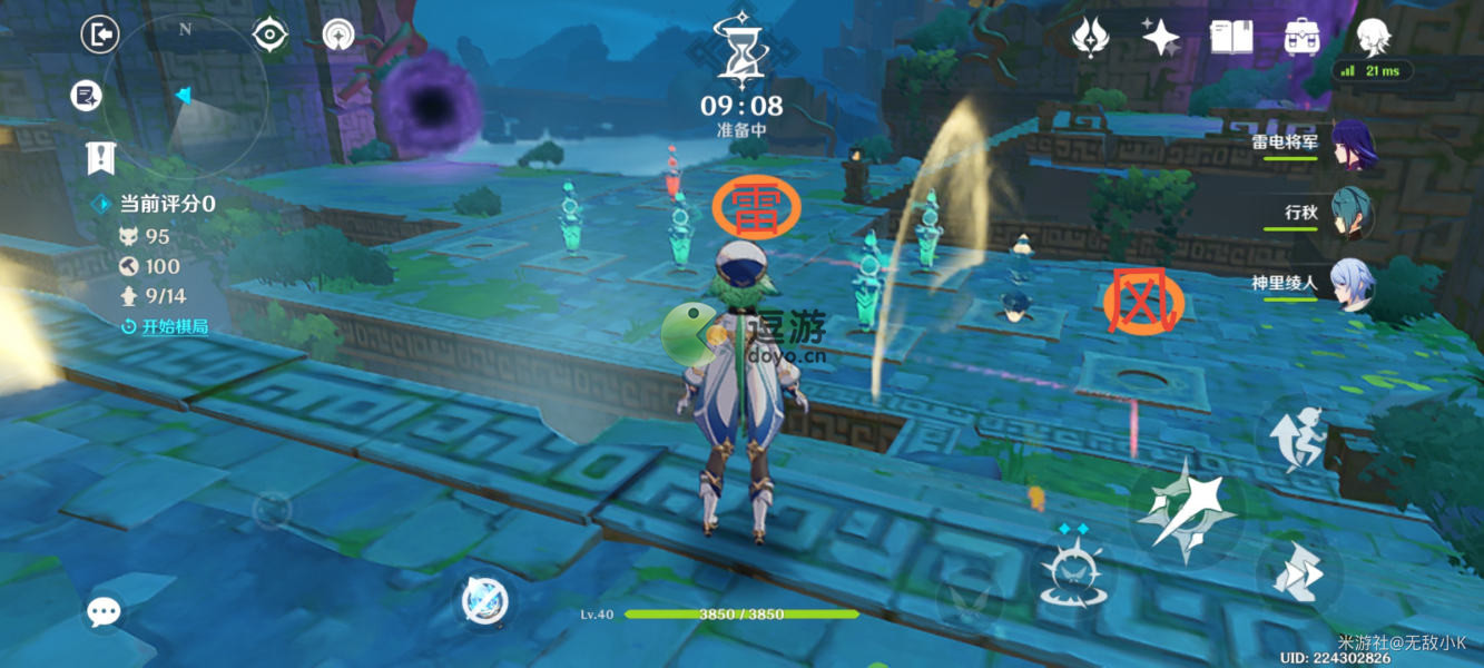 6.现在只需要管这边,遇见雷免疫的史莱姆开启第一个开关。尽量让走在桥上的时候再去关闭,敌人就会直接掉下去,关闭太早不会直接掉下去。