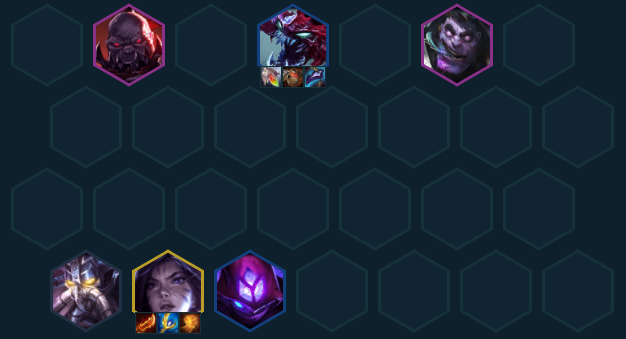 4-5或5-1上8,8人口大D卡莎,出了补上剑姬即可准备存钱上9,快没容错了只能在8人口赌2星卡莎,能上9的话补猫咪,大后期有2星加里奥可换赛恩,有变异转可以转变为3名流,因为技能机制名流格无论在哪卡莎都可以踩,这套阵容站位方面只需要多注意刺客,跟刺客打决赛圈把巨像沉底,卡莎放第一排即可。