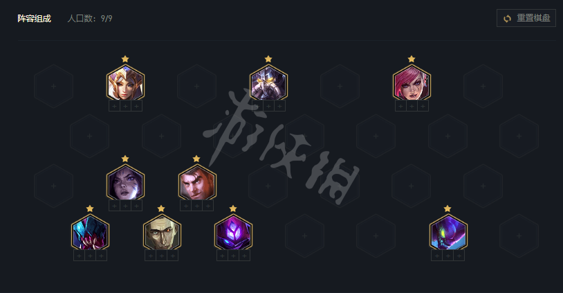 这套9人口阵容,卡莎2星也可不上9下猪妹不要3执法正常3-2升6.4-1拉7,5-1升8级。血量健康就上9找最终阵容不健康8级找卡莎也行。