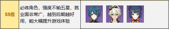 SS级,这个级别的角色属于必练的四星角色,在强度上甚至不输一些五星角色,就业面也非常广,越到后期越好用,能大幅提升游戏体验。