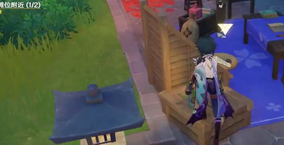 4、选择魈这个英雄,在旁边摆有鲜花的箱子上使用技能,清理多余灰尘(如上图),使用技能两次就能完成清理。