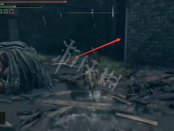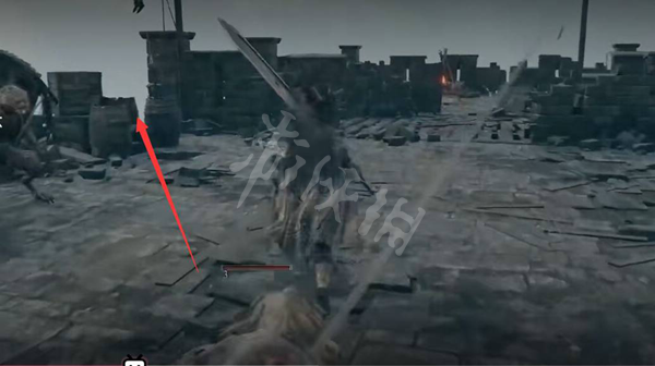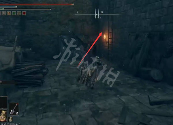 7、直走到达这里,左边有个梯子,把东西砍了直接下去,下去之后左走(要注意躲避打怪);