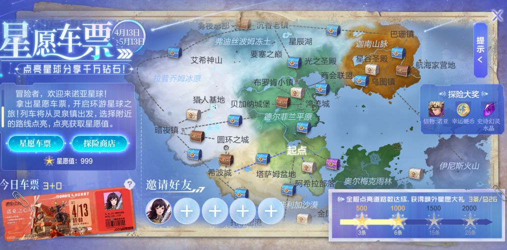 2、星愿车票全服协作点亮全星球