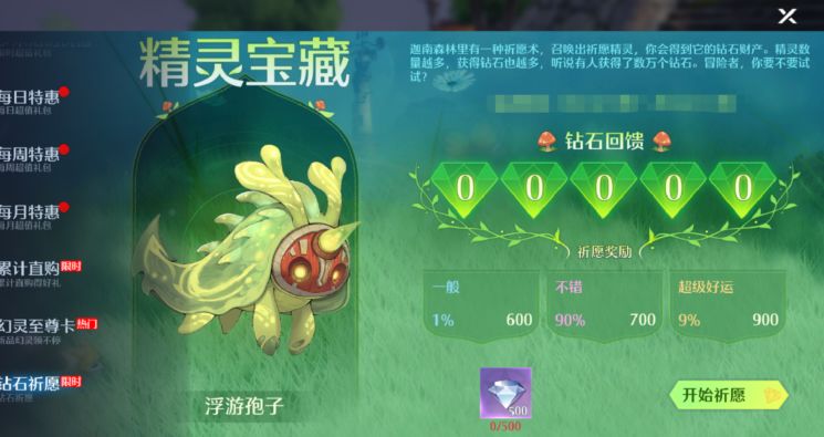 使用手中的钻石进行祈愿,即可获得额外钻石返利,祈愿中随机产生暴击加成,有机会获得海量额外钻石返利。