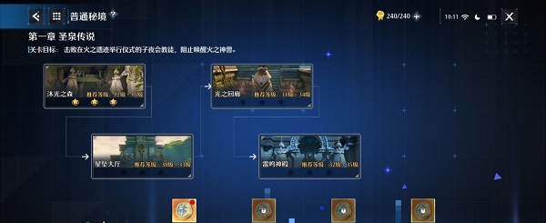 1、当玩家们挑战普通秘境后,每次秘境挑战都会根据一系列通关要求来给玩家评选星级,在普通秘境中,玩家们每获得3颗星,就可以获得一个幸运硬币。当一个章节的所有秘境都三星通关后,玩家们还能够在最后获得5个幸运硬币奖励。