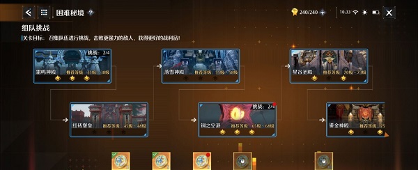 2、困难秘境的挑战奖励的发放制度类似普通秘境。玩家们可以在挑战困难秘境和炼狱秘境后积累星级,但奖励更加的丰富。