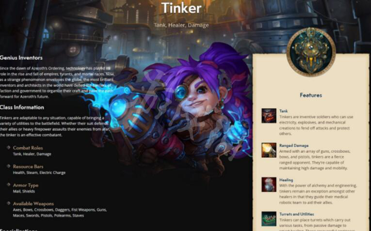 另外,修补匠搭配的种族也可能会有限制,就像7.0版本的DH一样。比如联盟方的侏儒,部落方的地精等等。