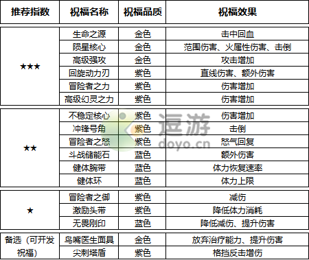 以下按武器不同来进行推荐