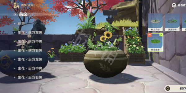 上述的花材选取步骤都选完后,点保存按钮即可完成盆景摆放任务。
