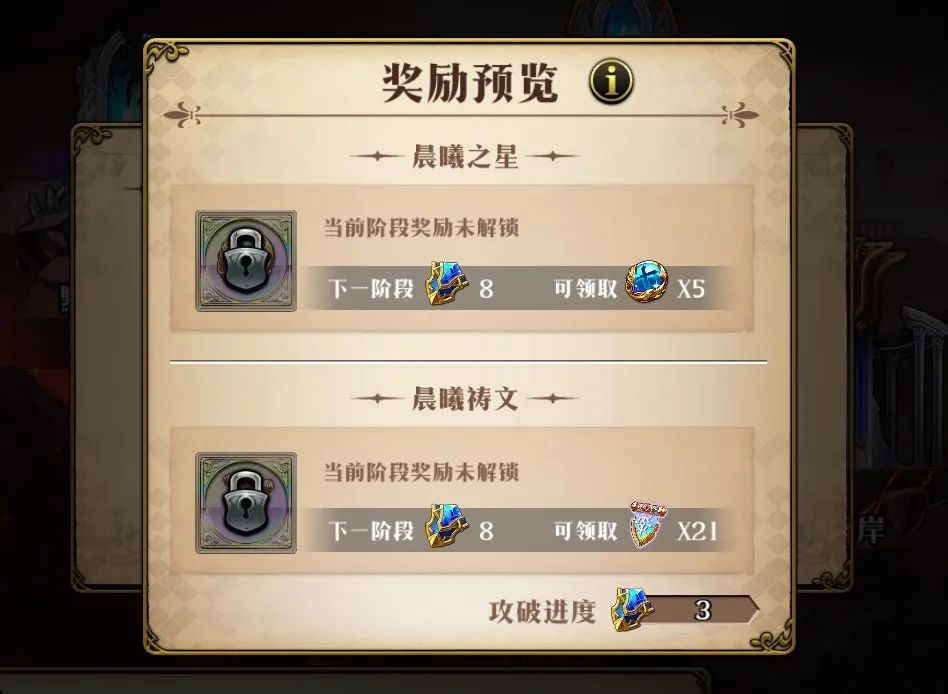 同时,收集到一定数量的“晦暗徽记”,还可以每周领取一次众神遗物奖励,奖励内容包括晨曦之星和晨曦祷文。