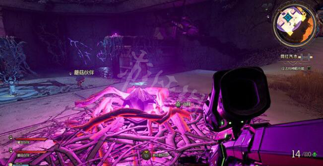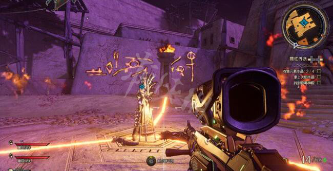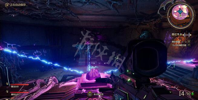 到达闪电神殿,使用近战武器破坏这里3处紫色水晶上的藤蔓,神殿在充能后,你可以拿到任务物品“电击水晶”。