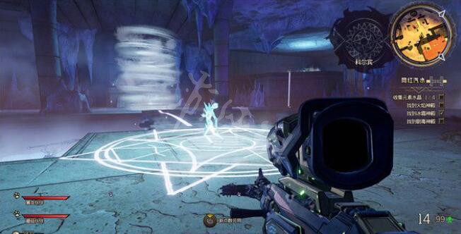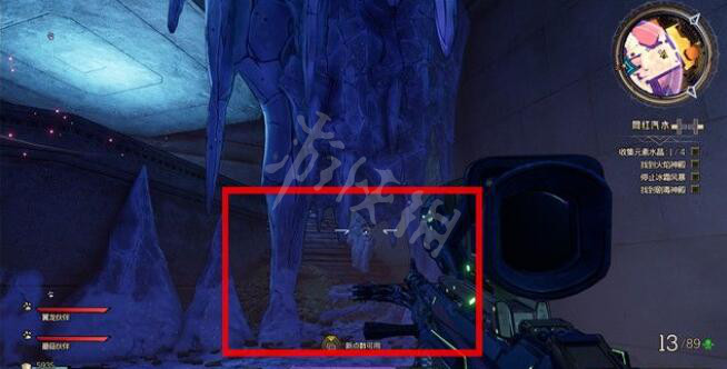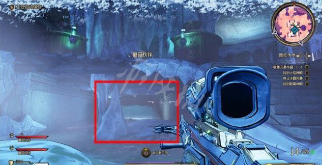接下来进行冰霜神殿的解谜,摧毁这里的3处“冰雕”水晶,第一块冰雕可以很容易找到。